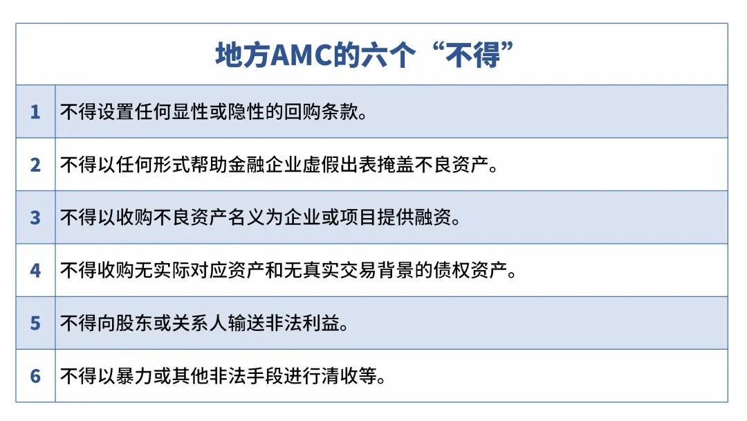 原中国银保监会出台《关于加强地方资产管理公司监督管理工作的通知》,指出地方AMC“六个不得”,标志着地方AMC迎来“严监管”时代。