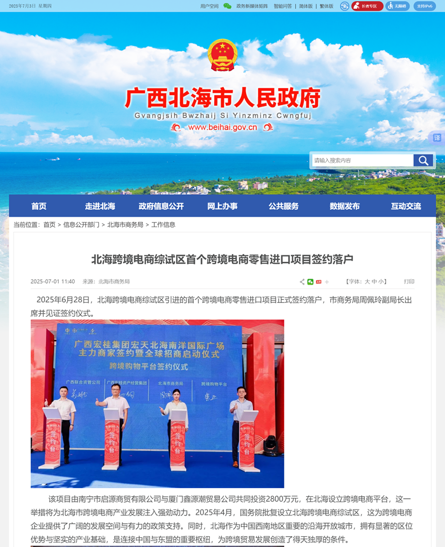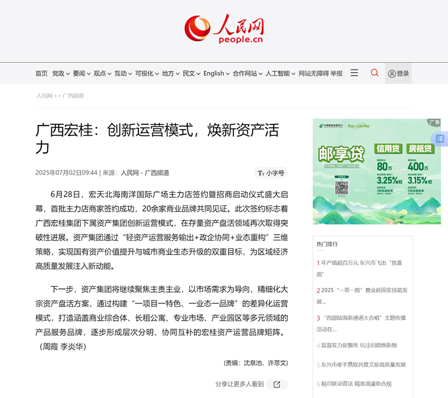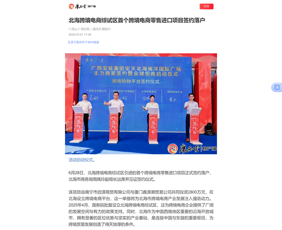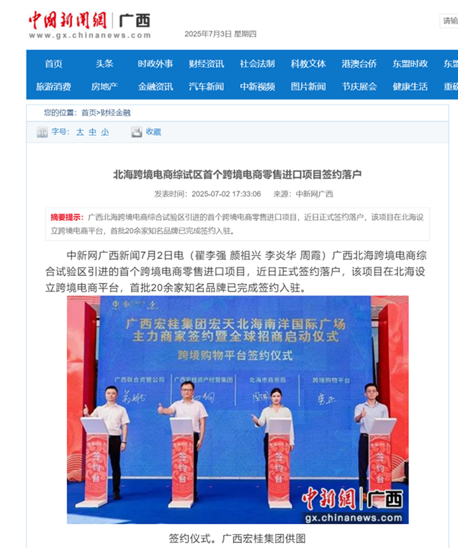 近日,宏天北海南洋国际广场主力店签约暨招商启动仪式盛大启幕,首批20余家知名品牌代表完成签约入驻。宏天北海南洋国际广场的产权由m88全资子公司与北海南洋房地产开发有限公司共同持有,其位于北海大道与贵州路黄金交汇处,依托核心商圈区位优势及成熟配套,是北海城市商业发展的重要载体,也是m88以“专业运营+资本赋能”模式推动“存量焕新”的典型案例。主流媒体广泛关注本次主力店签约暨招商启动仪式,以下为报道详情: